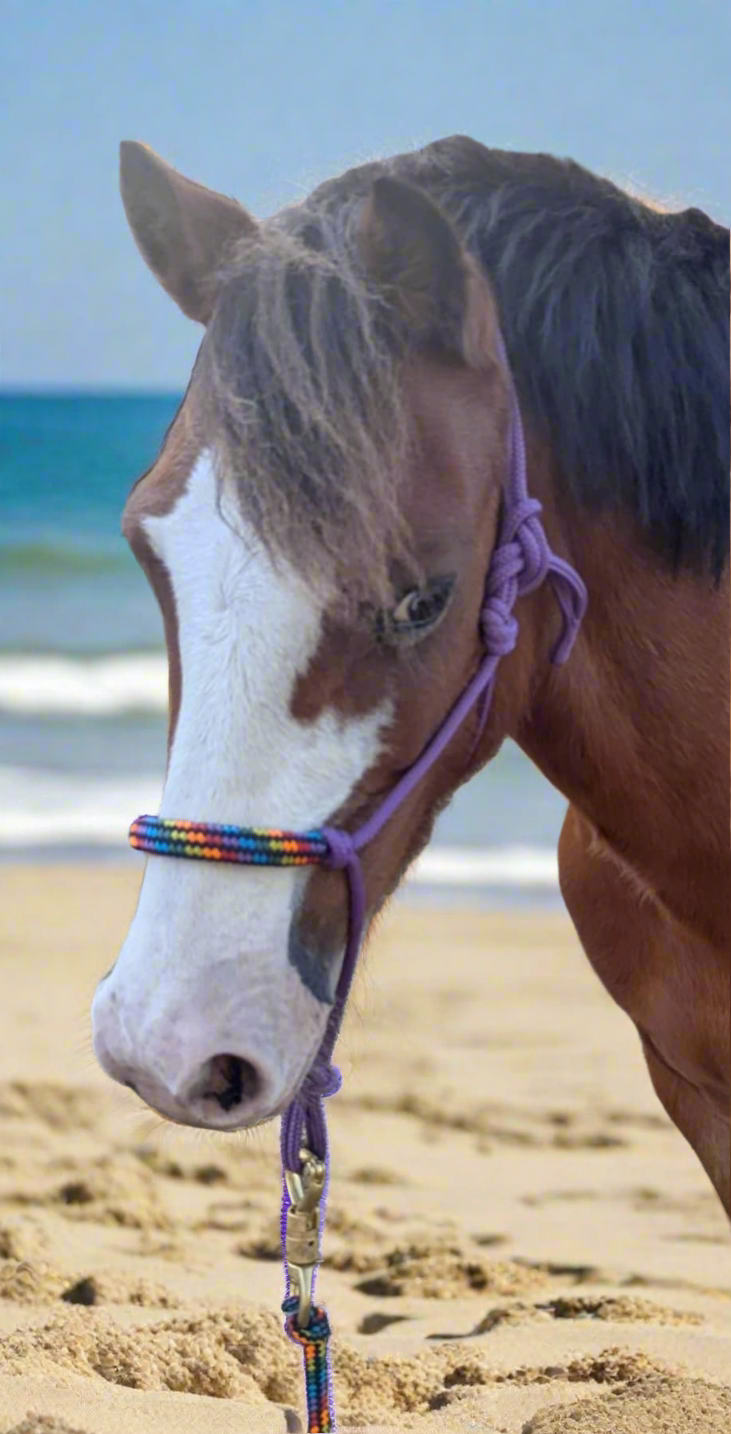 Hand-tied from smooth 1/4 inch yachting braid, it’s crafted with simple, precisely positioned knots that balance effectively on the horse’s head. The slim design discourages leaning and heaviness into pressure, promoting softness and responsiveness. Choose from an array of stunning colours to match your rope, reins, neck strap or personal taste